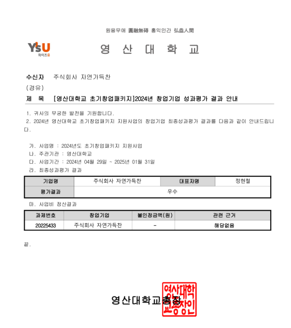(주)자연가득찬 우수기업선정